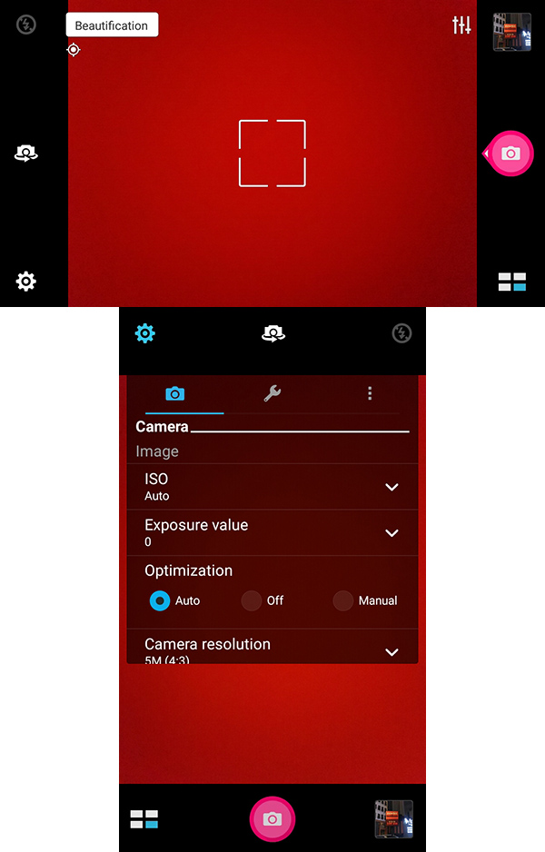 ส่วนกล้องหน้าความละเอียด 5 ล้านพิกเซลพร้อม Beauty Mode เช่นเคย