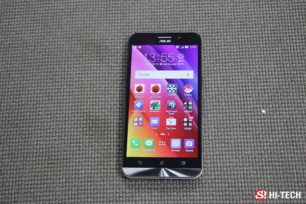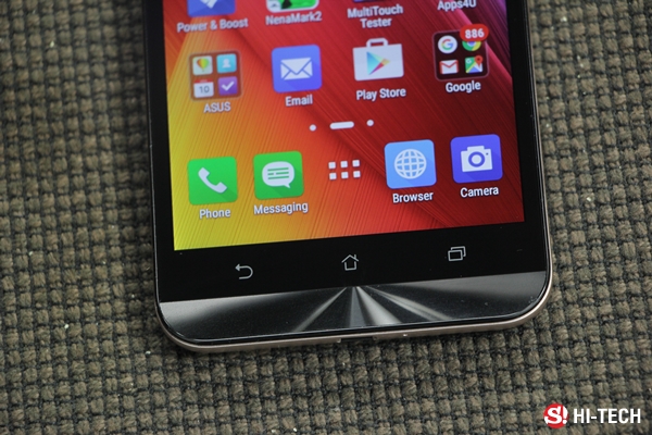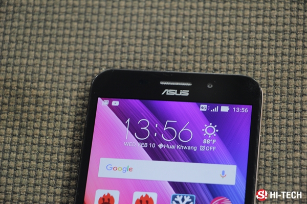 ด้านหน้า ดูเหลี่ยมขึ้น พร้อมกับหน้าจอขนาด 5.5 นิ้ว IPS LCD ซึ่งมีจุดเด่นในเรื่องของการประหยัดพลังงานดีพอสมควร แต่ความละเอียดที่ให้มาเท่ากับ Zenfone 2 Laser คือ 1280x720 เท่านั้น ถ้าดูจากราคาก็เพียงพอต่อการใช้งานแล้ว