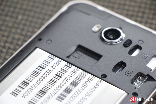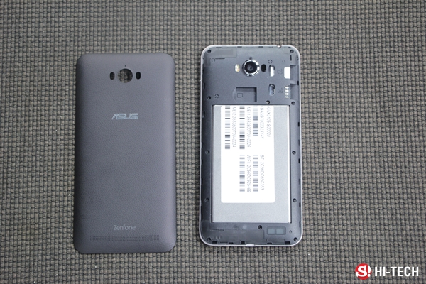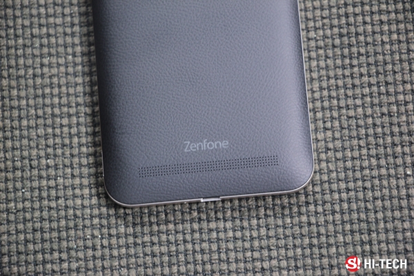สังเกตว่าฝาหลังจะดูเรียบให้ผิวสัมผัสเนียนมือเหมือนกับหนังเลยล่ะ ภาพรวมของการออกแบบเครื่องดูเหมือนกับ ASUS Zenfone รุ่นแรก ๆ มากไปหน่อย อาจจะดูเก่าไปหน่อยเมื่อเทียบกับกลุ่มของ Zenfone 2
